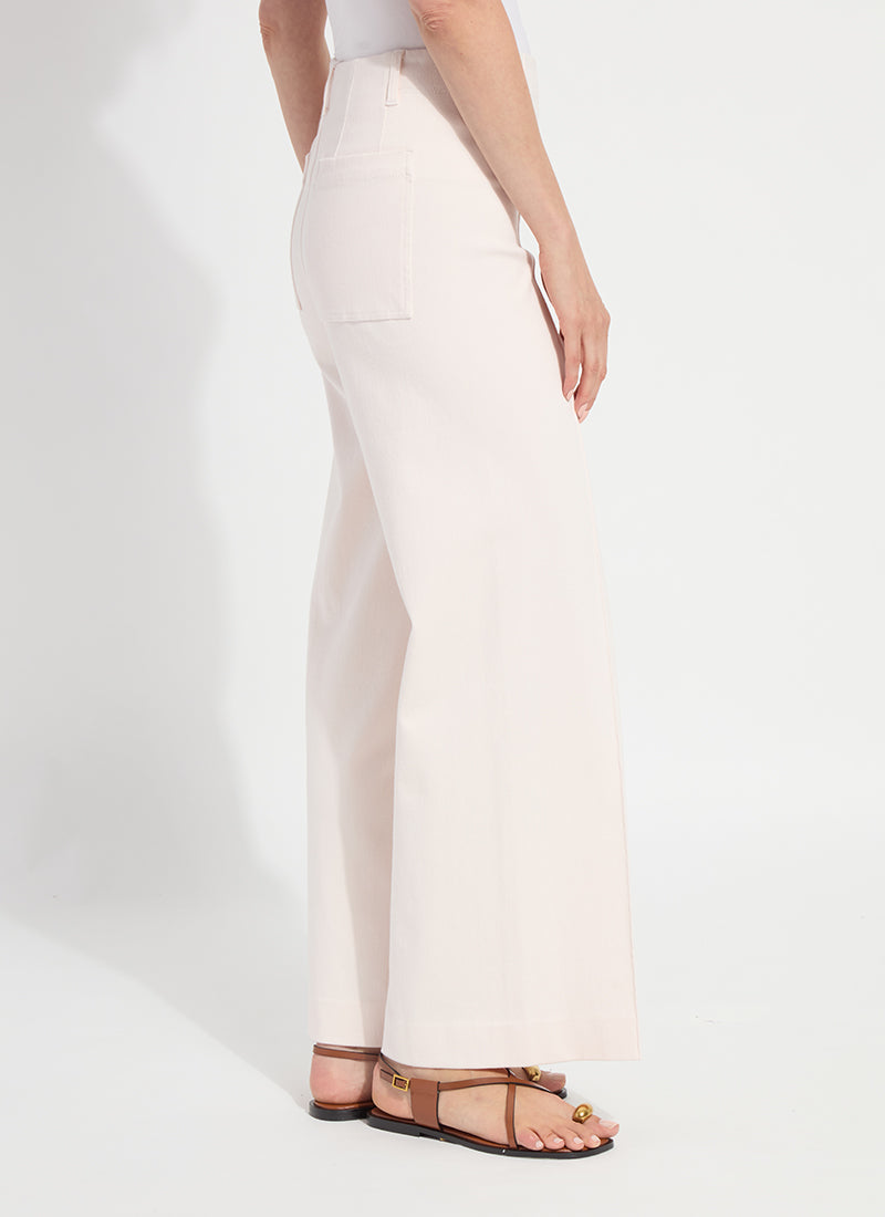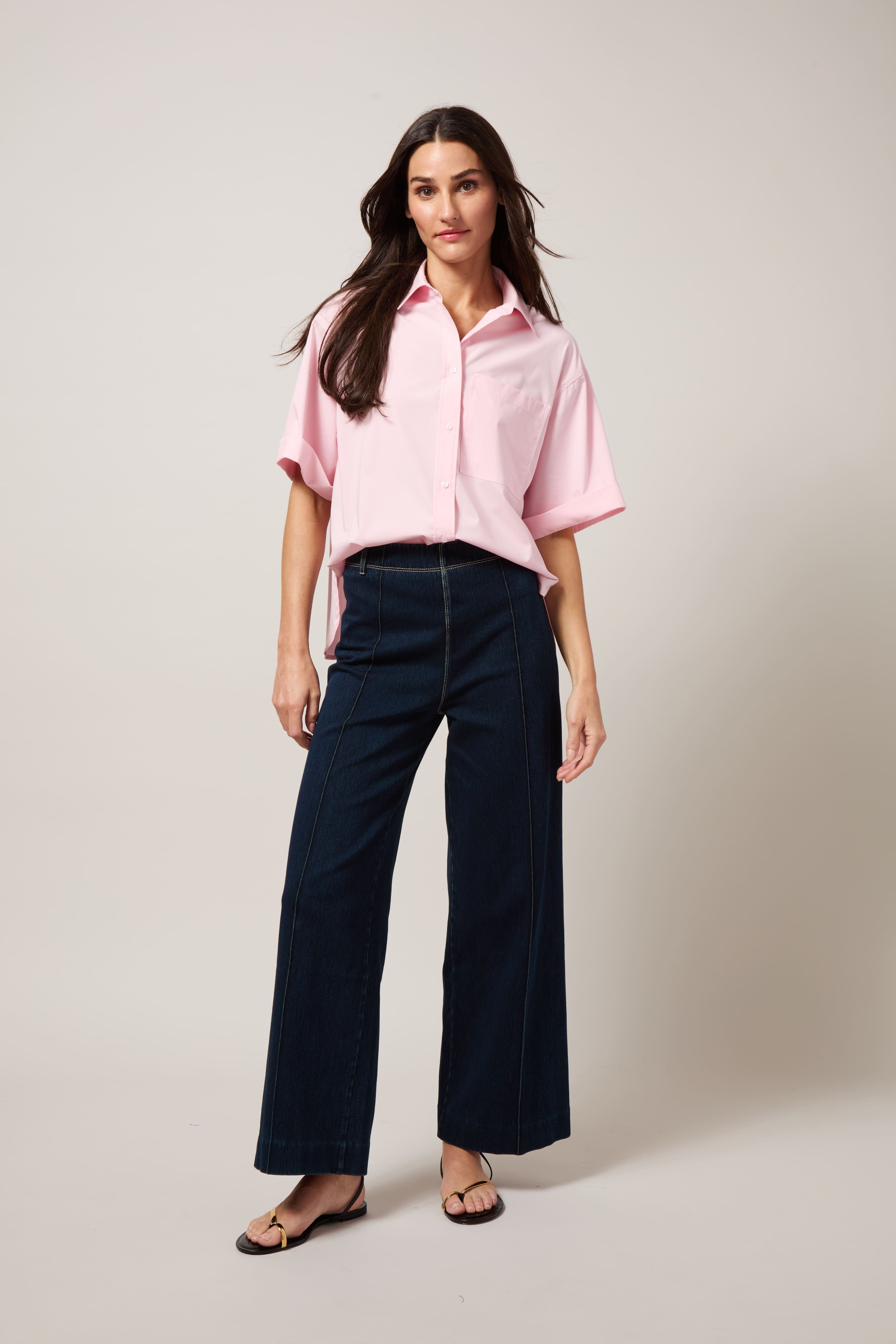 - Skims waist and hip, relaxed wide leg