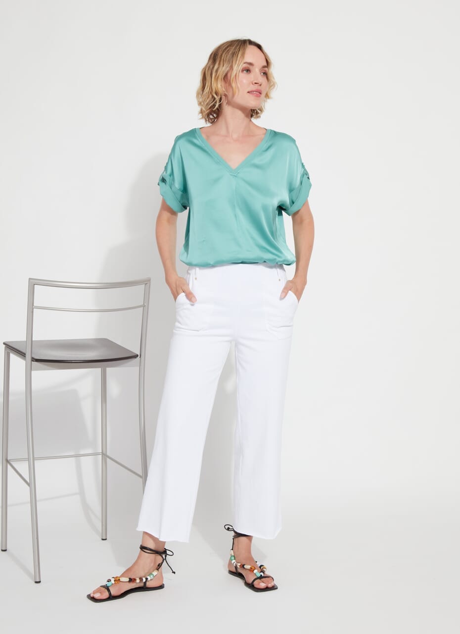 Made from 4-way stretch Knit Denim, the Athena Wide Leg Crop Pant offers front and back patch pockets, beltloops with studs and a concealed patented waistband. Offering a wide, cropped leg and raw-edge hem that’s simple to alter, the Athena pairs wonderfully with tucked tops and cropped jackets.