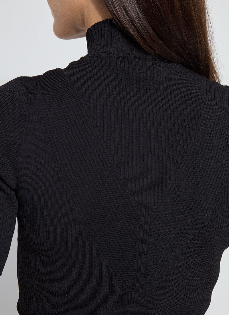 Made from Viscose/Nylon/Spandex Yarn, the Benadette short Slv Ribbed Top is a classic wardrobe staple that styles perfectly with the Livia Crop Pant or jeans and the Geneva Grommet Vegan Leather Jacket. Offering 4-way stretch, this fitted, short-sleeve mock-neck sweater is fully fashioned with a flattering V design in front and back. Machine wash, lay flat to dry. Store folded, never hung.