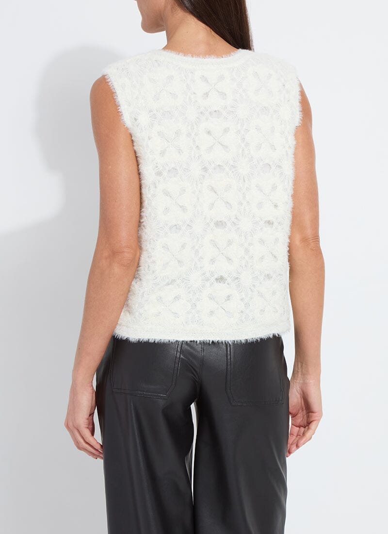 The beautiful Camila Crochet Fuzzy Shell sweater offers heirloom quality and timeless appeal. Light, fluffy and lined with Georgette, the Camila is constructed by attaching two hand-crocheted pieces together. Offering a boxy, true-to-size fit and made from feathery Crochet Fuzzy Knit, the Camila styles wonderfully with the Georgia High Neck Tencel Jersey Top and jeans, pants or skirts. Machine wash inside out and lay flat to dry. To store, fold never hang.