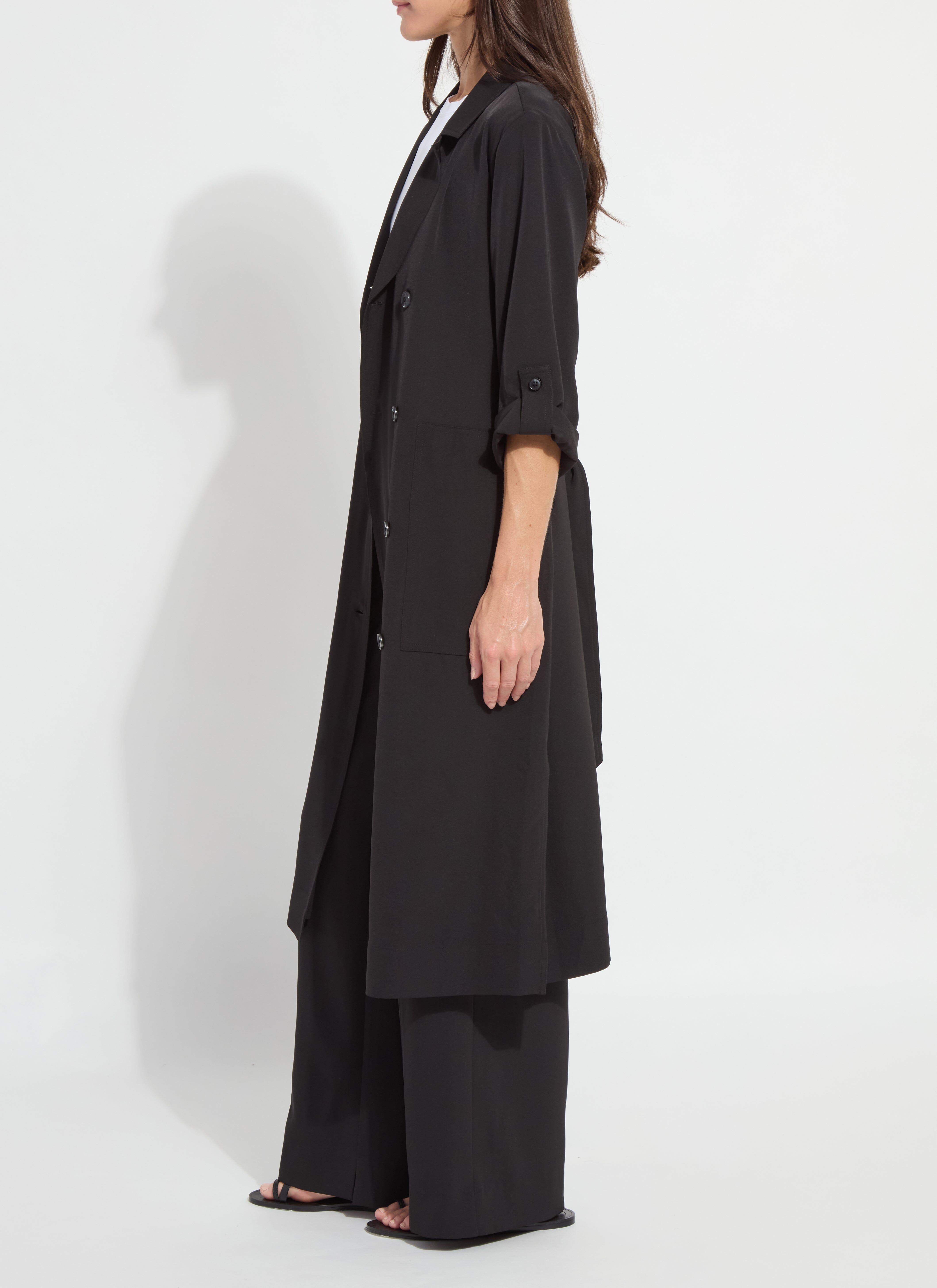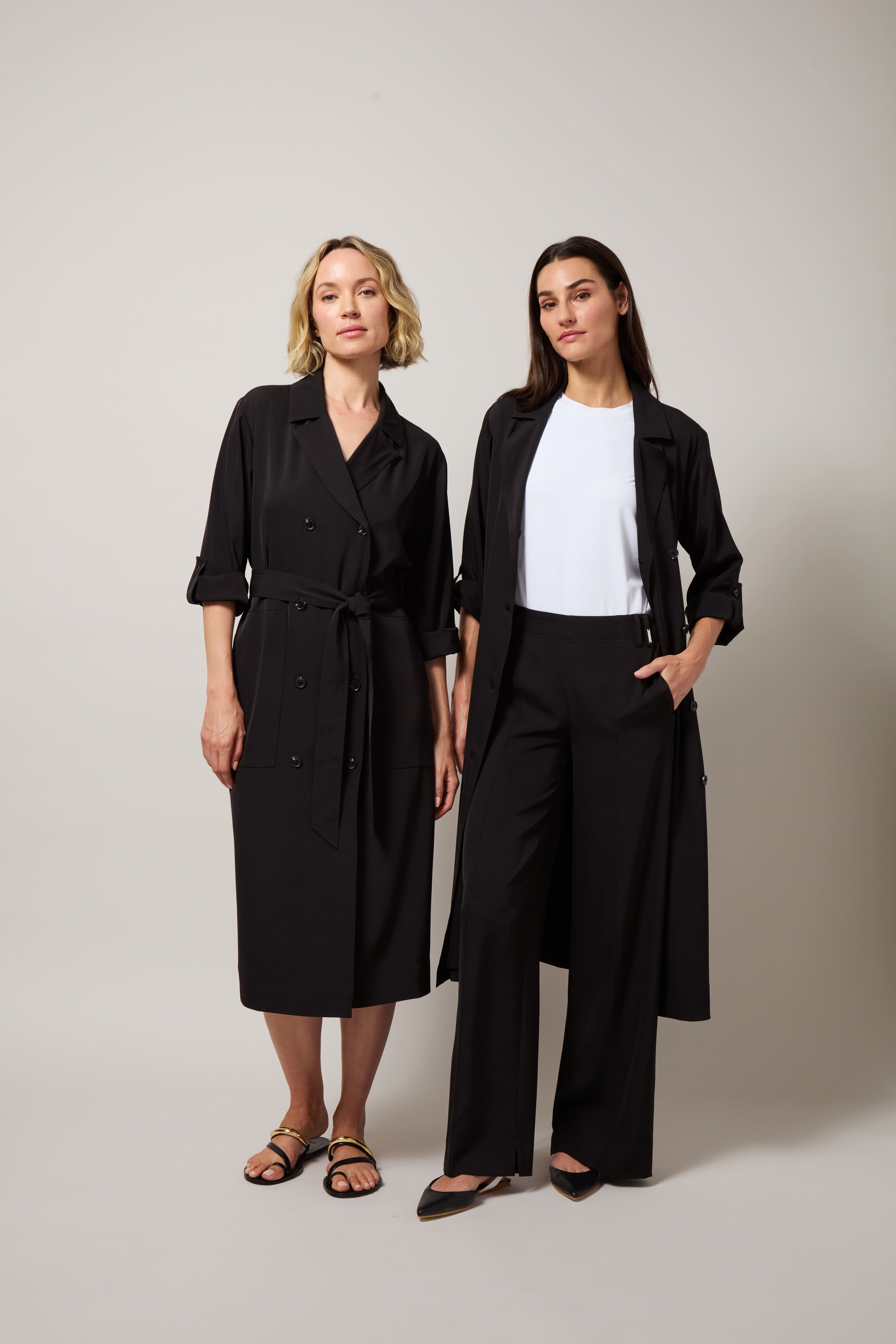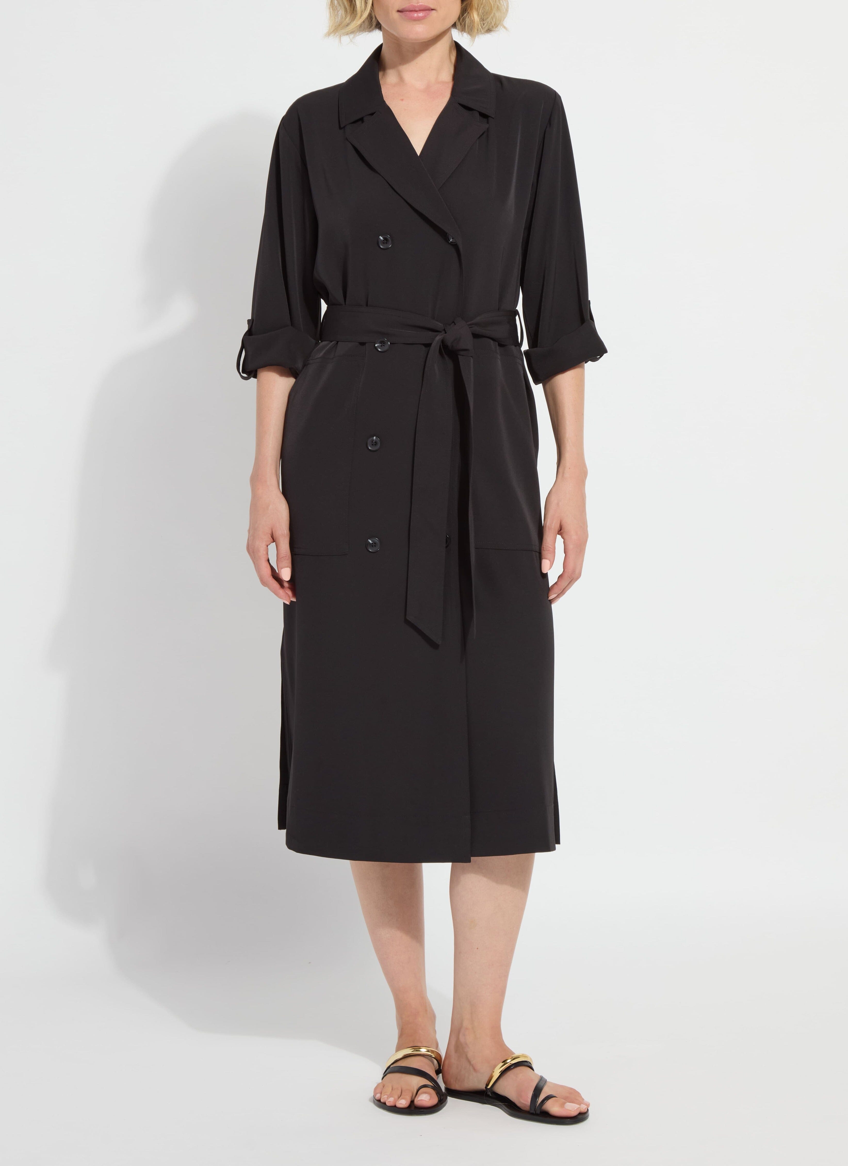 Made from wrinkle-resistant Stretch Woven fabric, the Ellison Convertible Trench Dress is designed to wear multiple ways. We love it buttoned and worn as a dress or worn open as a light trench over the Ananda Printed Tank Top and Ellison Trouser. True to size and double-breasted, the Ellison offers 2-way stretch, functional side pockets, side slits and relaxed, tab sleeves. Beautifully constructed, the Ellison Convertible Trench Dress features a double-self front and yoke, faux horn buttons and a detachable belt. Machine washable.
