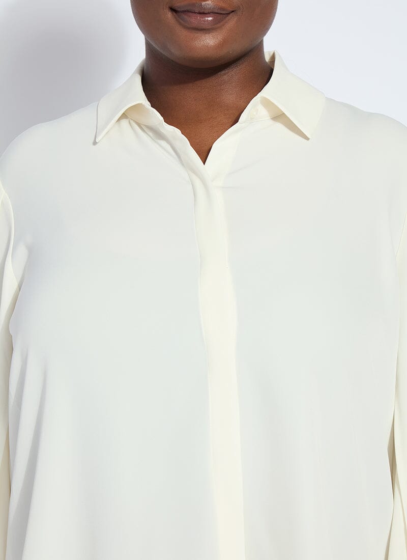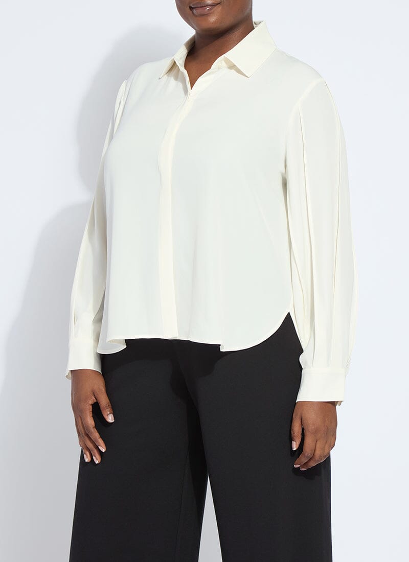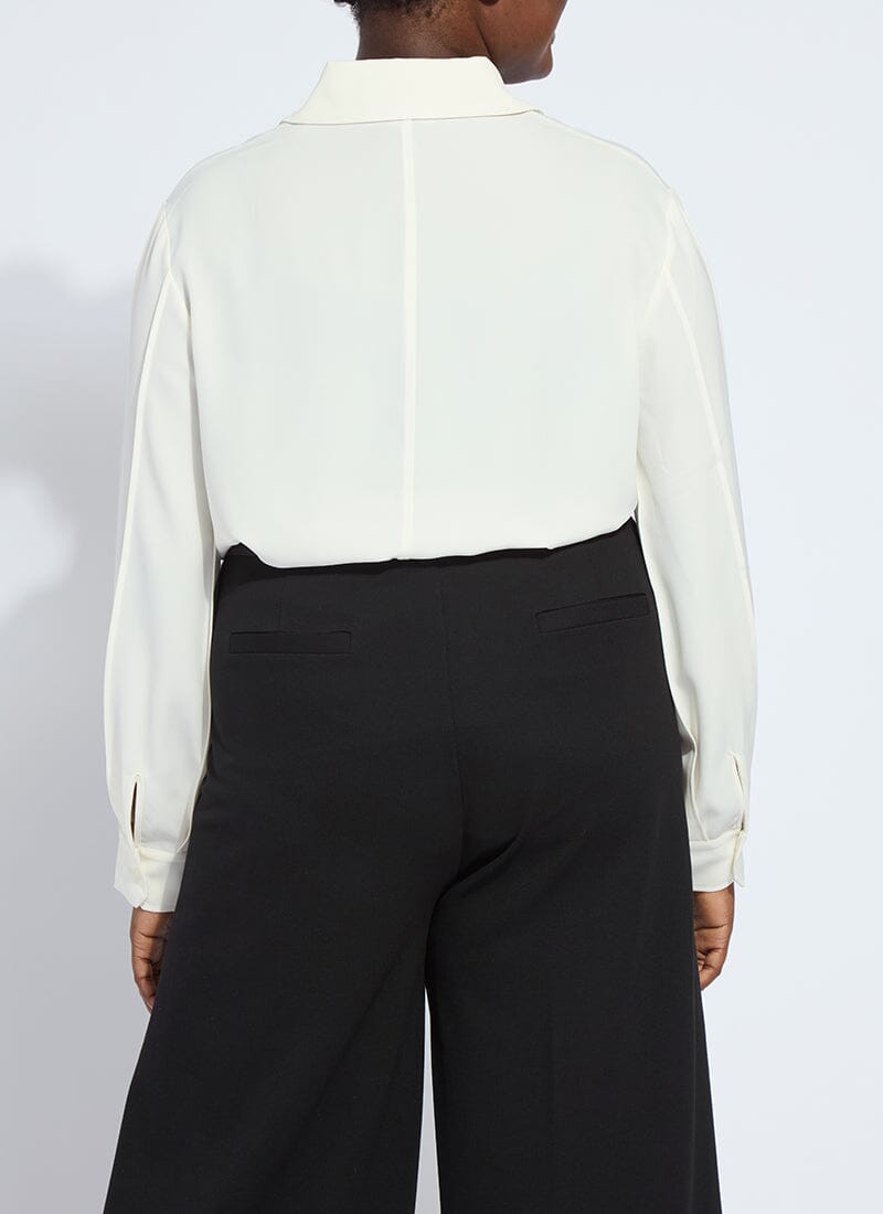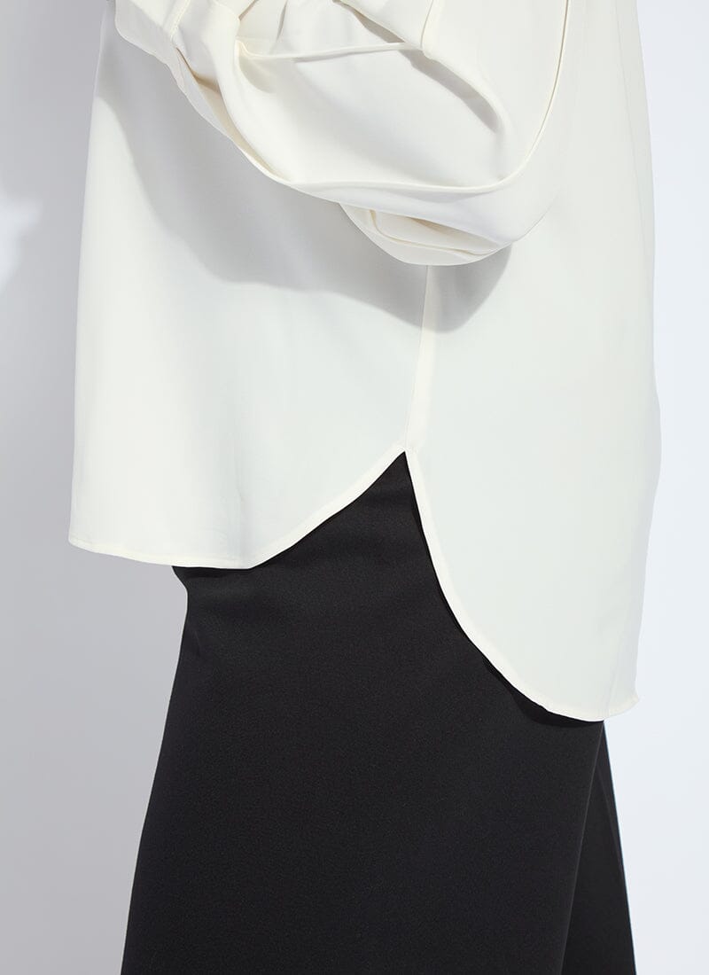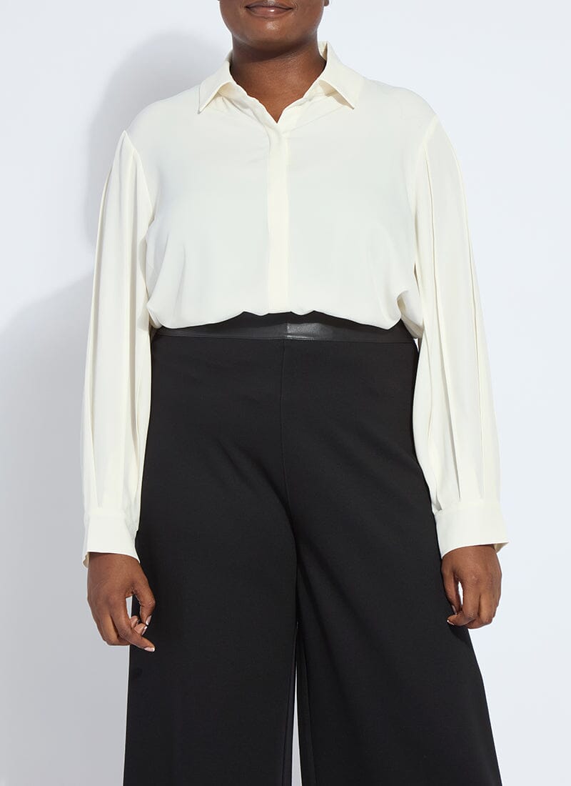Made from 2-way Stretch Woven fabric, the Ivette Pleated Balloon Sleeve Blouse features a menswear collar, center back seam and exaggerated balloon sleeve with deep pleats and cuffs. True to size, the Ivette Pleated Balloon Sleeve Blouse styles effortlessly with Lysse’s wide leg jeans and Ponte pants alike.