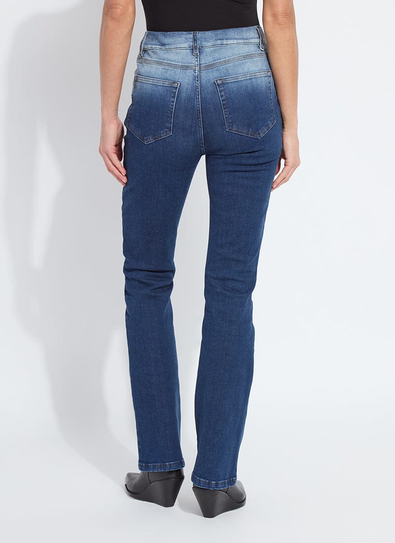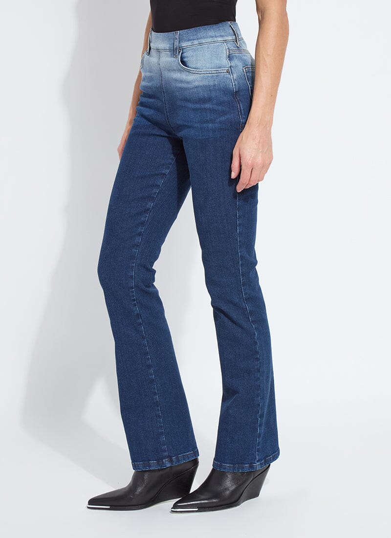The Premium Denim Frances Wide Leg Crop showcases an authentic denim look with two-toned tobacco topstitching, functional front and coin pockets, a back yoke, back patch pockets and beltloops. Offering a concealed patented waistband, the Lianna Slim Flare Premium Denim is made from “Holding Power” Premium Denim – a woven denim that adapts to all shapes – with two-way stretch. The Lianna Slim Flare Premium Denim jean skims the body from waist to knee before opening into a flared leg. Partner with the Xenia Metal Fringe Top and black boots for an edgy look. Size up if between sizes.