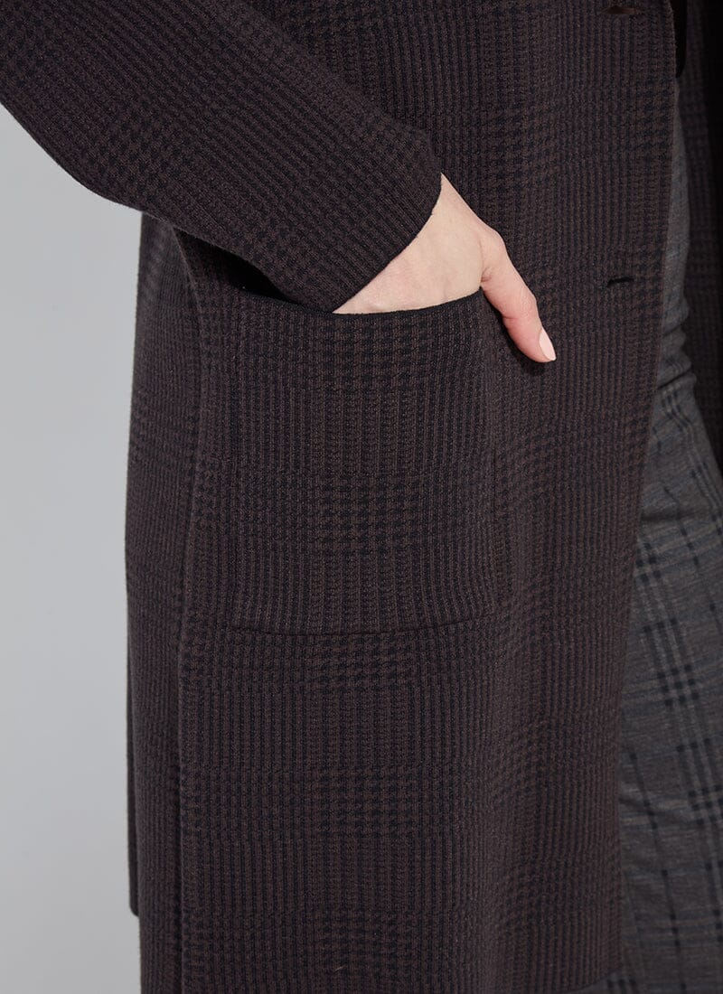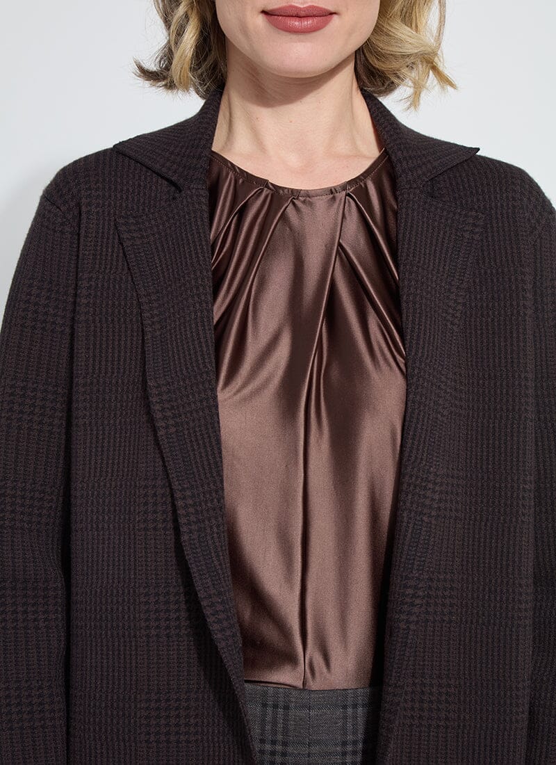 Made from Double Face Cozy Jacquard, the menswear-inspired Lina Sweater Car Coat is a cozy top layer over virtually any combination of top and bottom. Featuring 4-way stretch, menswear collar and front pockets, the Lina Sweater Car Coat falls to knee length, is clean finished and offers a relaxed fit. Style it over Aisha High Neck Draped Blouse and Darcy Pleated Wide Leg Trouser.