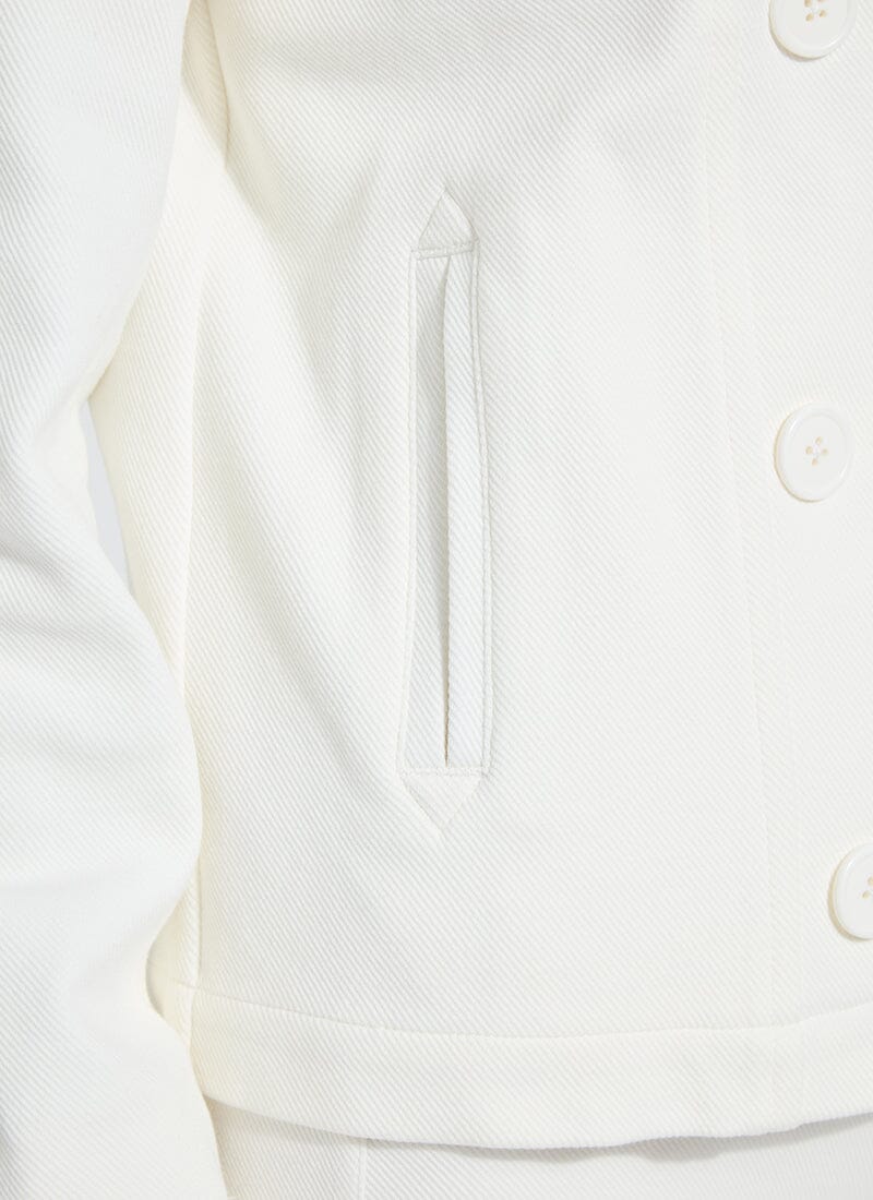 Made from 4-way Stretch Cavalry Twill, the double-breasted Maude Cropped Peacoat features a detachable rib collar, rib sleeves and functional front pockets. Half lined in Satin and true to size, this cropped peacoat is meticulously constructed and on-trend. We love it styled with Fashion Connie Slim Button Down and Alma Hi Waist Cavalry Trouser.