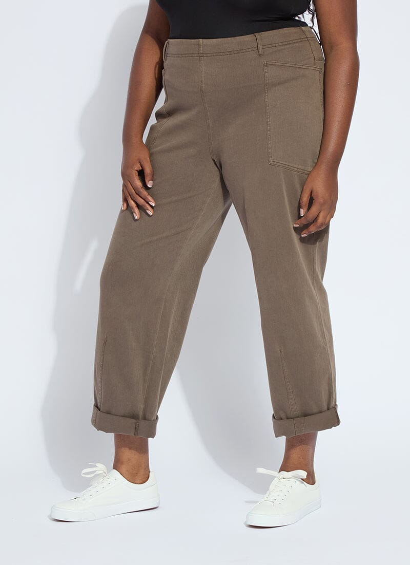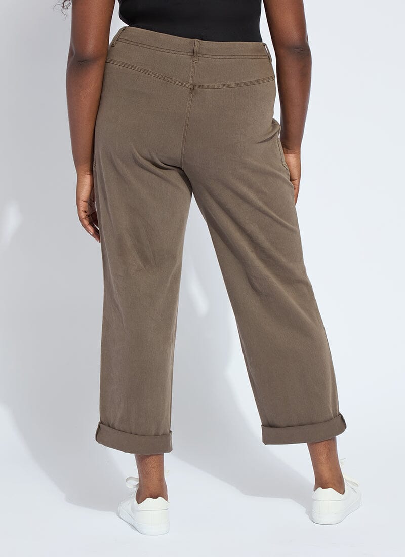 The Penelope Curved Cuffed Denim jean, made from 4-way stretch garment dyed Knit Denim, features a patented waistband, back yoke, beltloops, coin pocket and front patch pockets extending from the front, past the side seams, to the back. Super soft, these jeans are sewed fully and then dyed for variations in color tone – creating an antique or vintage look. Fitted at the waist, the Penelope opens into a barrel leg with a front dart at the bottom hem for a cinched look. Style them cuffed or uncuffed with the Odessa REVERSIBLE Knit Short Slv Tee.