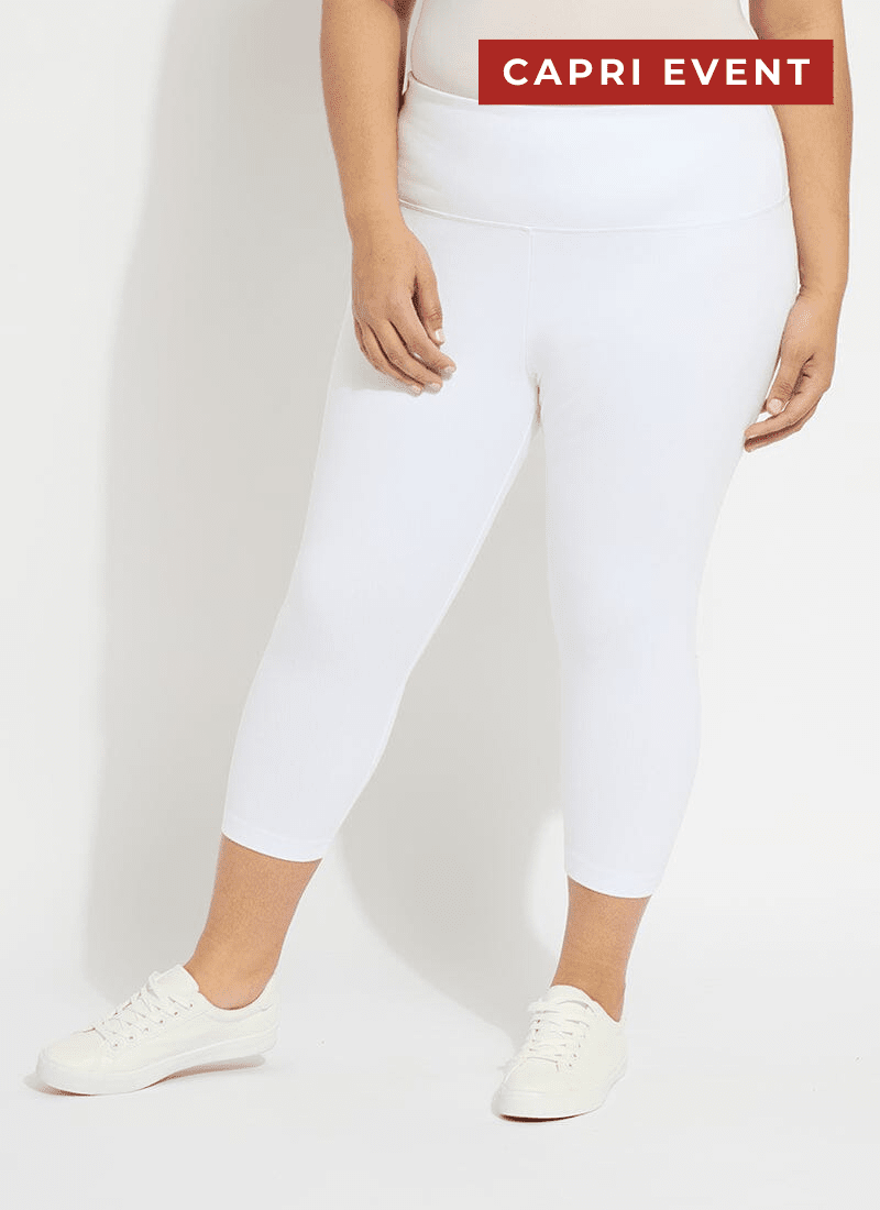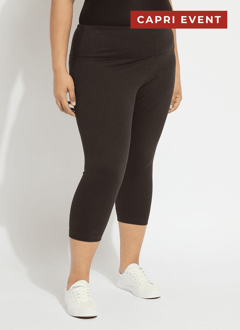 Leggings you'll love to live in. Step into a pair of comfy cropped pants designed just for you with our plus-size capri leggings. These form-fitting beauties are fabricated with a four-way stretch knit and feature a 360-degree smoothing waistband for a smooth and sleek silhouette. With a mid-calf length and a body-hugging fit, our plus-size capri leggings are perfect for all of your active, casual, and everyday styles. Want a little style inspiration? Top off these capris with a cute graphic t-shirt and sneakers for your evening walk uniform. Need to run some errands and check off that to-do list? Add a collared button-down shirt and flats for a stylish take on mid-century modern ensembles. Want to get cozy when temperatures drop? Add a denim jacket and ankle boots for an on-trend look that’s sure to turn heads. If you’ve been looking for a pair of plus-size cropped leggings that won't let you down, give these cropped cuties a try. You just may have found your new favorite fashion friend!