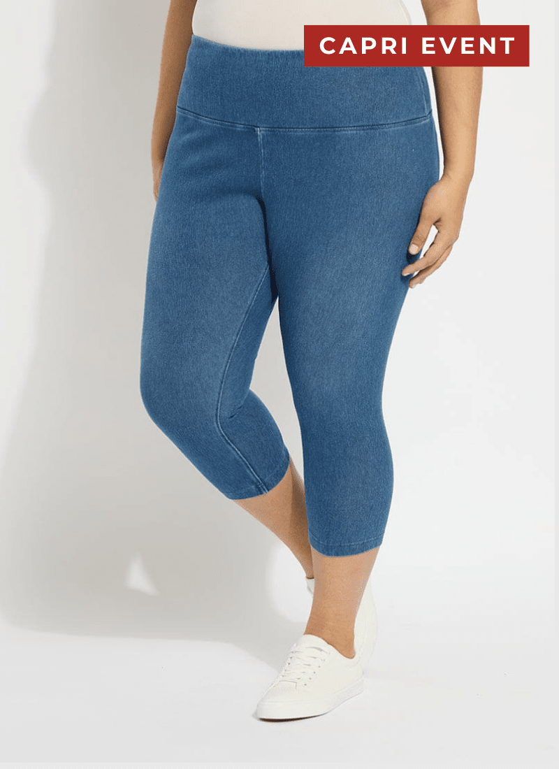 Crafted from 4-way stretch Knit Denim, the Denim Capri delivers a body-hugging fit, concealed patented waistband, below-knee length and all-day resiliency. Enjoy your next backyard BBQ wearing these smoothing capris with a tank, cardigan and sandals.