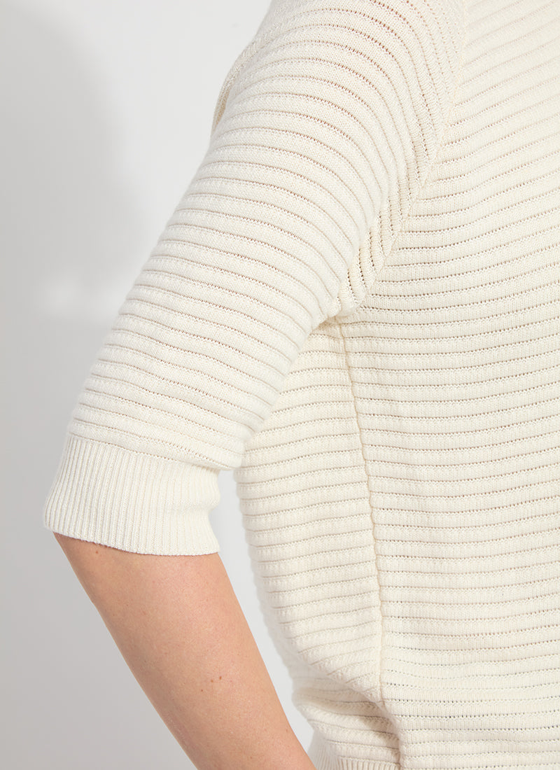 Made with Linen-Cotton Blend Yarn, the Regina Short Sleeve Cardigan features raglan sleeves, faux horn buttons, a rib neck and bottom, and true-to-size fit. Naturally stretchy, the Regina offers a cropped length and styles wonderfully with any of our Ponte pants or wide-legged jeans. Machine wash on delicate and lay flat to dry. Store folded, never hung.