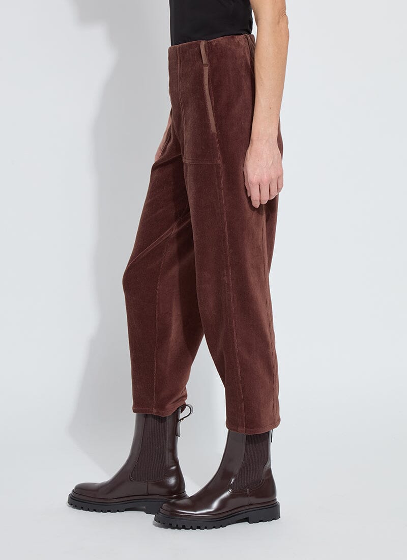 Stretchy, soft and warm, the Tatum St Baby Cord Crop Barrel Trouser offers patch pockets, Vegan Suede trim and beltloops, a concealed patented waistband and back yoke. The Tatum Barrel Trouser is fitted at the waist and relaxed though the hips with a barrel leg. Made from comfortable Stretch Baby Cord, the Tatum Barrel Trouser pairs cozily with the Logan Lurex Feather Zip Up Sweater and boots.